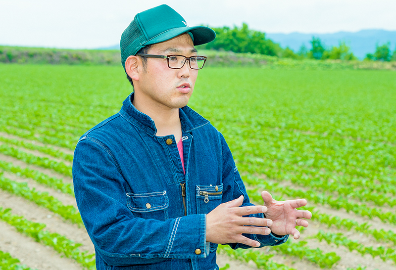 てん菜のほか、じゃがいも・小麦・豆類・ゴボウを栽培する畑作農家の四代目。北見で生まれ育ち、北見に根を張る39歳。JAオホーツク青年部の会長を務め、現在はJA北海道青年部の副会長。